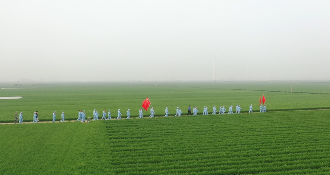 大家換上紅軍服裝,分為四個列隊(duì)進(jìn)行整備,在拓展教官的帶領(lǐng)下,信心滿滿地走上新時代鄉(xiāng)村振興的“長征路”。