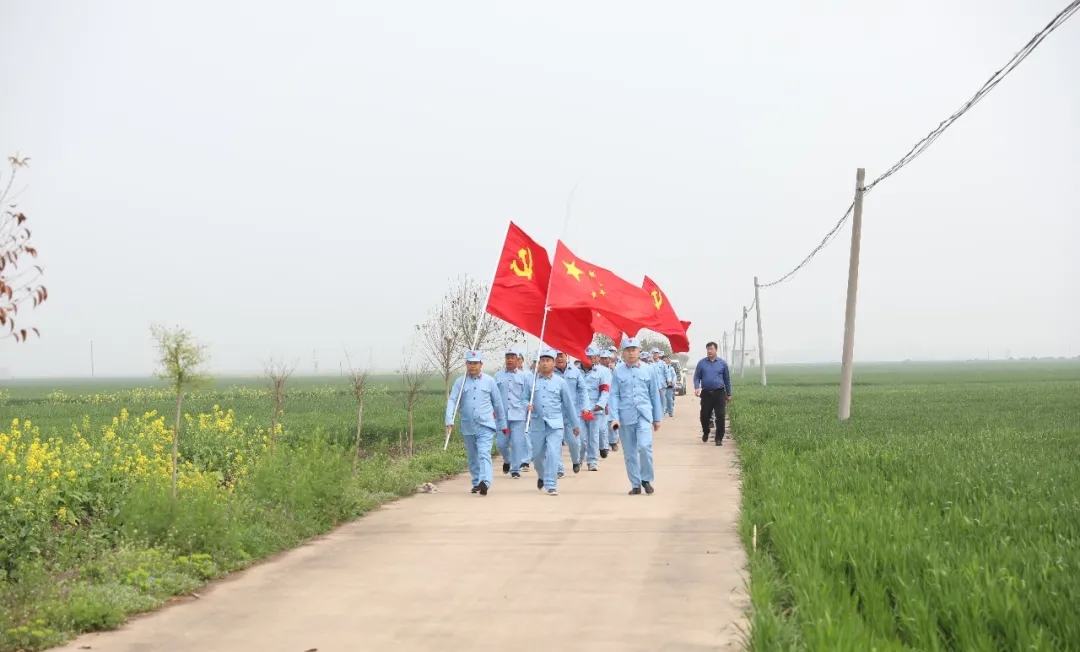 “我一定要跟著大部隊(duì)走,絕不掉隊(duì),不給紅軍前輩抹黑?!眲倓傋鐾晔中g(shù)的七一村黨支部書記何治安斬釘截鐵地說。在七二村,熱情好客的七里倉群眾不僅給“大軍”送來了西紅柿、黃瓜、茶雞蛋、香蕉等補(bǔ)給品,還表演了“祖國你好”、“美麗生活”等扇子舞,再現(xiàn)了當(dāng)年紅軍到哪都受人民群眾擁戴的情景,同志們的疲憊一下子煙消霧散.....按照拓展行程安排,在盆李村的“周口市第一個農(nóng)村黨支部舊址”,同志們進(jìn)行了參觀瞻仰和重溫入黨誓詞等活動,回顧了歷史,緬懷了先烈,震撼了心靈,錘煉了黨性。