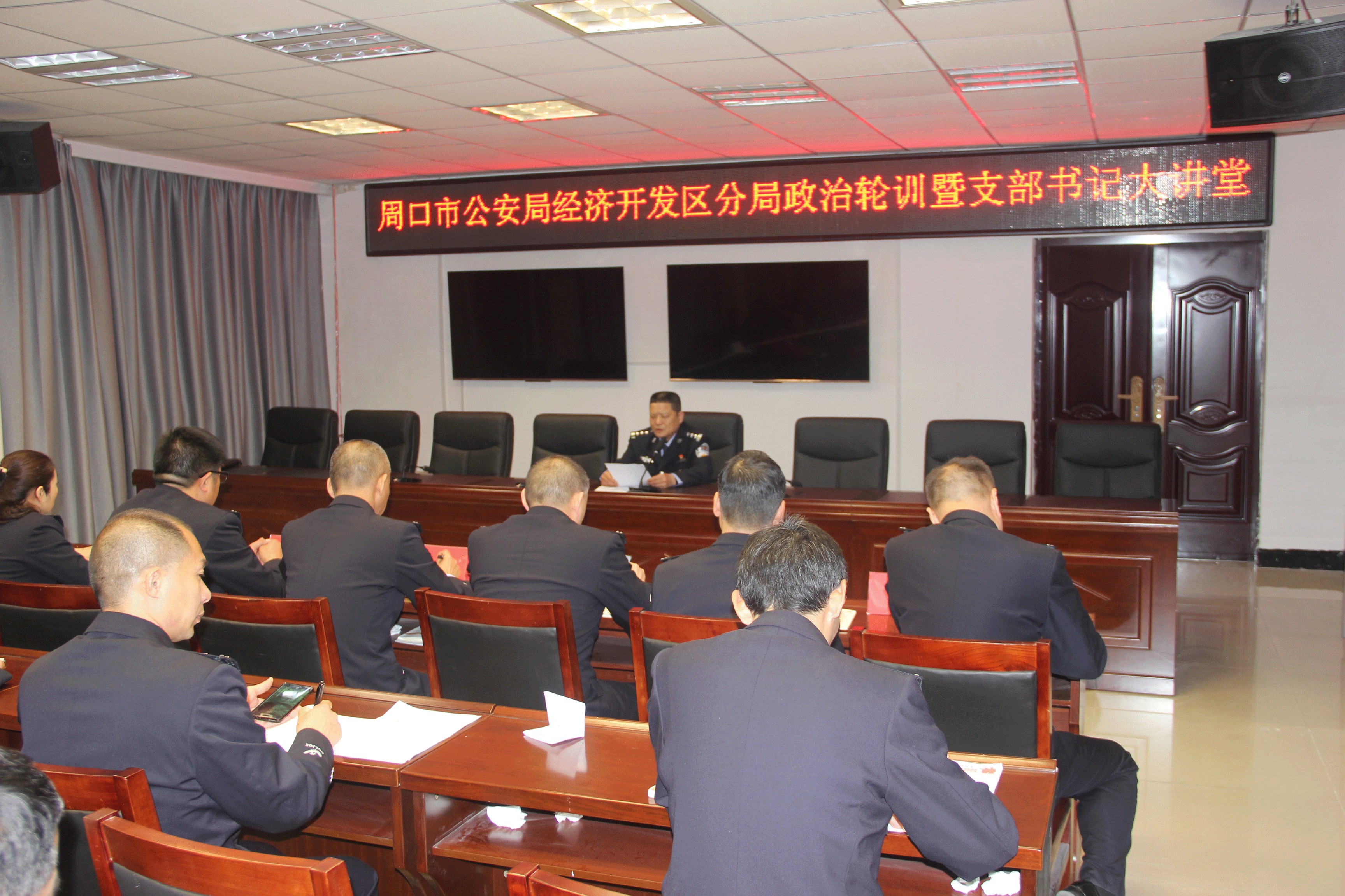 3月29日晚,開發(fā)區(qū)分局舉辦第一期政治輪訓暨支部書記大講堂,分局黨委副書記、政委岳備戰(zhàn),黨委副書記、副局長田貽林及局黨委班子成員、各單位負責人、副科級以上民警和各支部書記參加了活動。