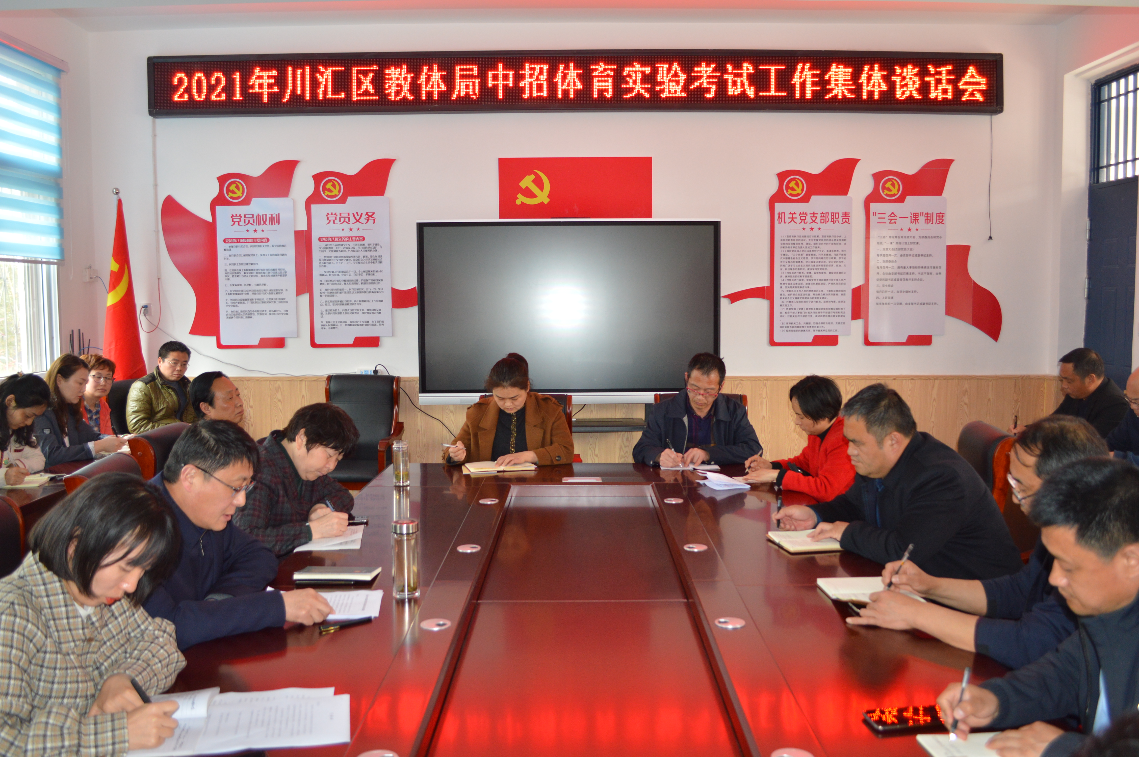 4月9日下午,川匯區(qū)教育體育局召開中招體育實驗考試集體談話會。派駐區(qū)教體局紀(jì)檢組組長許攀主持會議,區(qū)教體局黨組書記、局長徐德志進(jìn)行黨風(fēng)廉政談話,區(qū)教體局分管領(lǐng)導(dǎo)、考試負(fù)責(zé)人及考務(wù)人員、各中學(xué)校長參加會議。