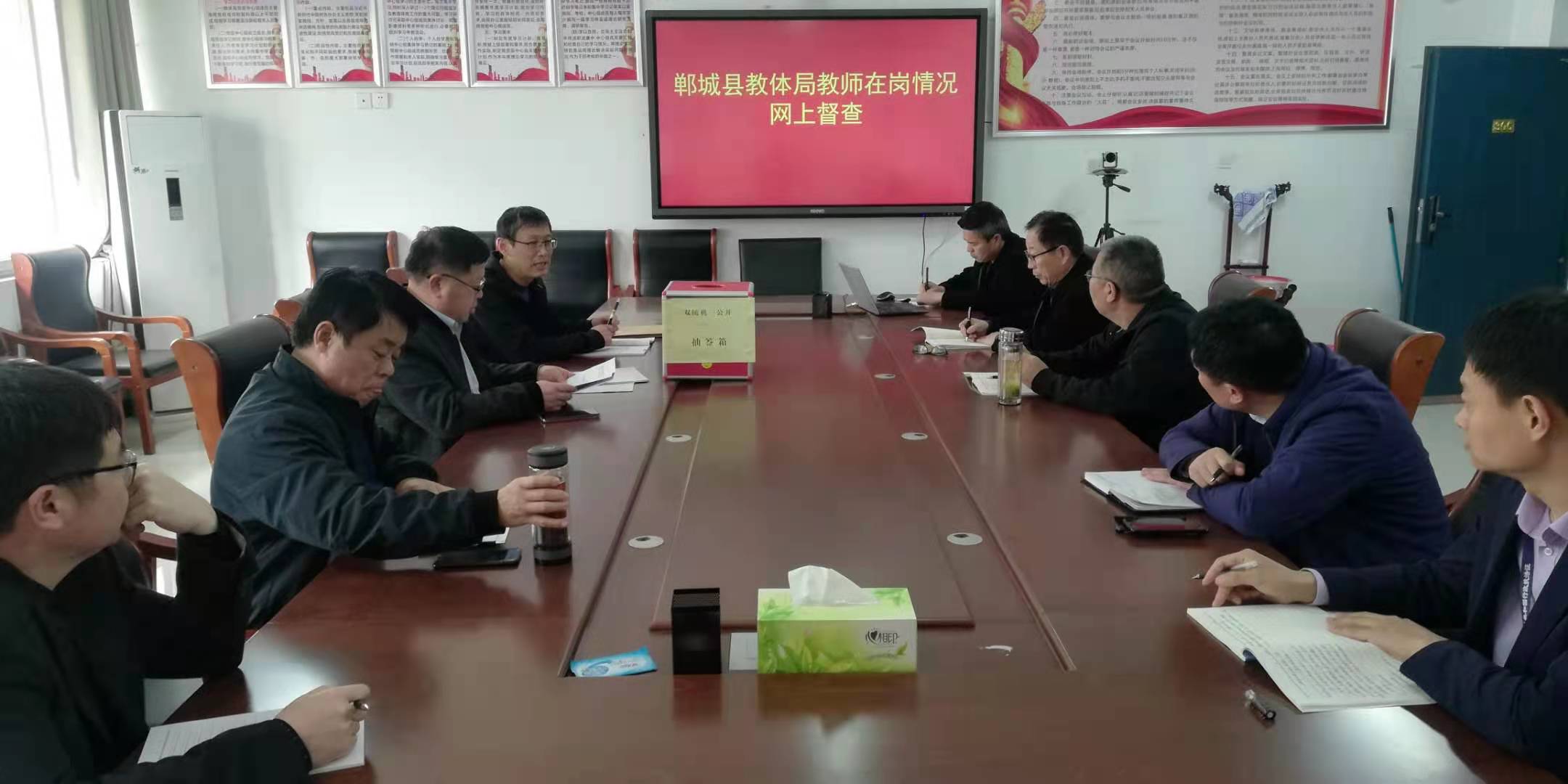 抽查時(shí),紀(jì)檢組、督導(dǎo)室、辦公室、人事股、目標(biāo)辦等相關(guān)股室負(fù)責(zé)人和工作人員全部到崗到位,從抽簽箱中隨機(jī)抽出三個球號組成一組數(shù)字,然后從《隨機(jī)抽查檢查對象名錄庫》中確定被督查學(xué)校。網(wǎng)上督查人員接通被督查學(xué)校負(fù)責(zé)人或者教職工“企業(yè)微信”,通過視頻形式督查教師在崗信息公示情況、教師到崗情況、平時(shí)學(xué)校(中心校)對教師管理教育情況等,并同步與人事(師訓(xùn))教職工(特崗教師)信息系統(tǒng)比對。出差、請假等須當(dāng)場提供相關(guān)佐證材料。對疑似存在問題的,紀(jì)檢、人事部門當(dāng)即啟動線下復(fù)核程序。