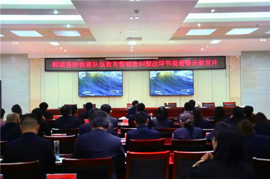 為進(jìn)一步推進(jìn)檢察隊(duì)伍教育整頓工作,做好隊(duì)伍教育整頓查糾整改階段思想發(fā)動(dòng)工作,增強(qiáng)干警的廉潔自律意識,筑牢拒腐防變的思想防線,4月13日晚上,鄲城縣人民檢察院組織全體干警觀看警示教育片《“保護(hù)傘”自身難保,“坐地虎”坐進(jìn)監(jiān)牢》。