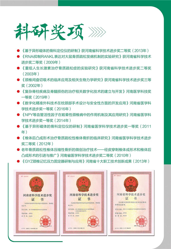 從事骨科臨床與科研工作30余年,多次赴國外學習深造和學術(shù)交流。在脊柱外科、關(guān)節(jié)外科、脊柱畸形矯形等方面積累了豐富的臨床經(jīng)驗。尤其擅長頸椎病的診斷與治療,在全國首例開展了頸椎非融合技術(shù)——動態(tài)固定技術(shù)(DCI),為頸椎病的非融合治療開辟了新途徑。近年來特別致力于枕頸部畸形,寰樞椎骨折、脫位等方面的臨床研究和總結(jié)。相繼開展了具有代表性的脊柱外科高難度手術(shù):頸人工椎間盤置換術(shù),腰椎非融合技術(shù)及枕頸部畸形、腫瘤、環(huán)樞關(guān)節(jié)不穩(wěn)和脫位,顱底凹陷癥的手術(shù)治療,在國內(nèi)較早開展了脊椎腫瘤的標志性治療技術(shù)——脊柱腫瘤的后路全椎體切除術(shù)。