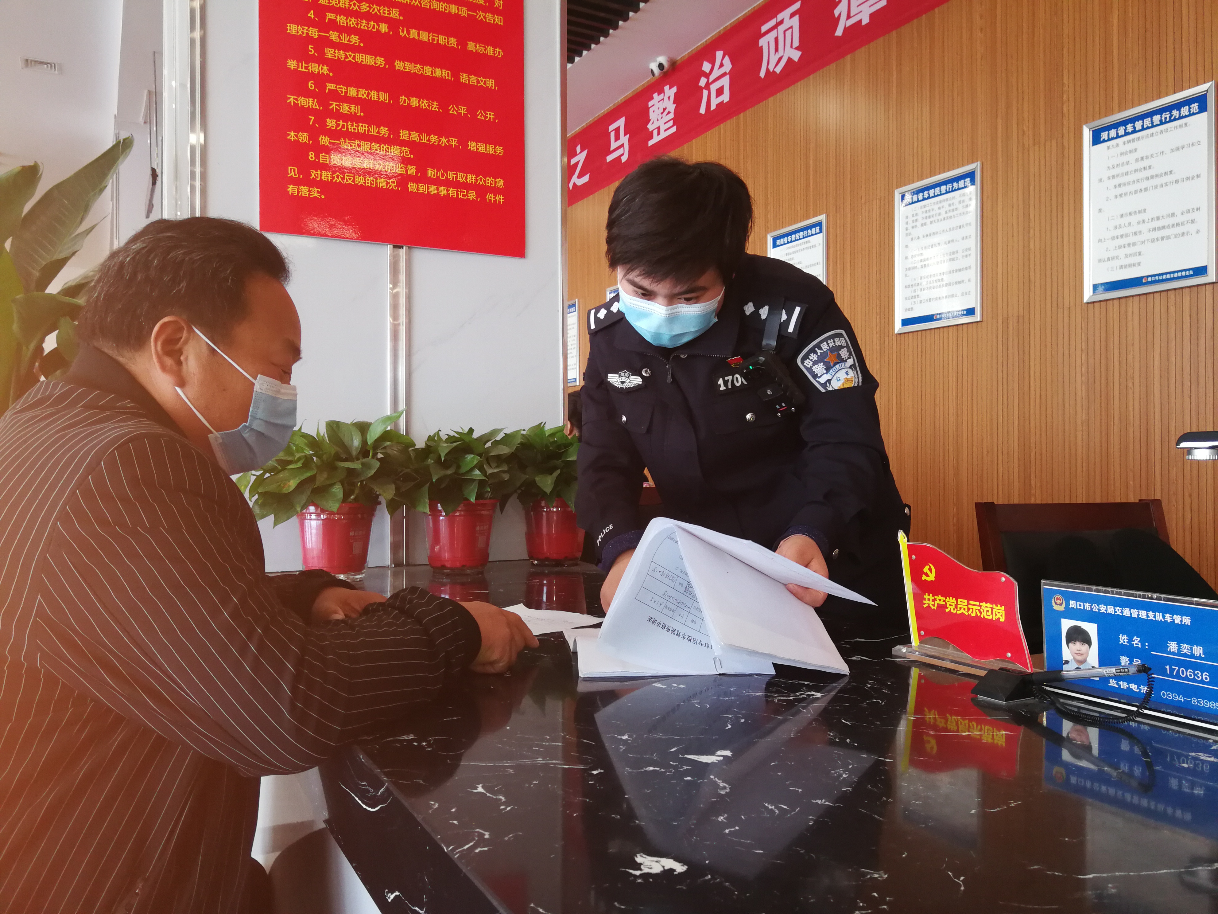 三是設(shè)置黨員示范崗,發(fā)揮引領(lǐng)作用。車管所在各個(gè)業(yè)務(wù)大廳增設(shè)了“黨員示范崗”,充分發(fā)揮優(yōu)秀黨員的示范、帶動(dòng)作用,引領(lǐng)全體工作人員牢記服務(wù)宗旨,提升服務(wù)水平,樹立良好形象。