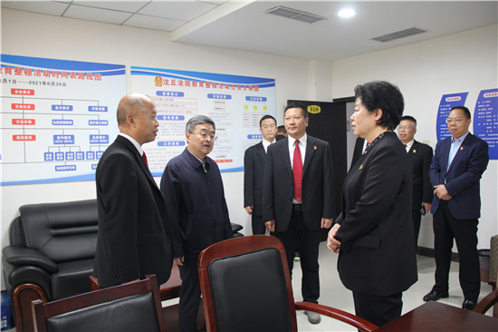 4月30日下午,市委常委、政法委書(shū)記路云到沈丘縣法院就隊(duì)伍教育整頓工作進(jìn)行專題調(diào)研指導(dǎo)。沈丘縣委書(shū)記皇甫立新,縣委常委、政法委書(shū)記段然陪同調(diào)研。