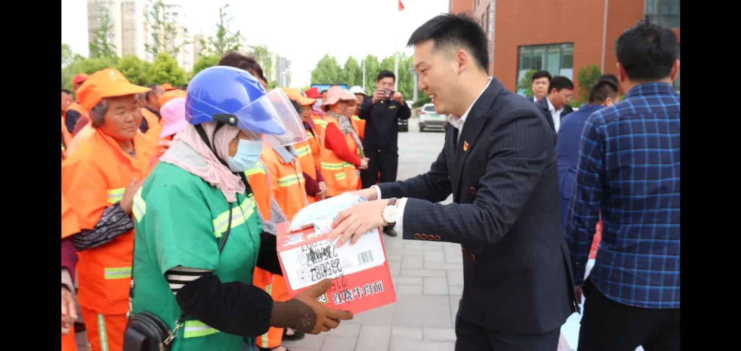 為表達(dá)對一線環(huán)衛(wèi)工人的關(guān)懷,致敬城市美容師,4月29日,中原眾恒集團(tuán)在道琚酒店組織開展五一勞動節(jié)慰問環(huán)衛(wèi)工人公益活動。市城鄉(xiāng)一體化示范區(qū)綜合執(zhí)法中心副主任張英、王東方,中原眾恒集團(tuán)董事長王文濤,副總經(jīng)理謝華、張輝,道琚酒店總經(jīng)理李陽及示范區(qū)100余名環(huán)衛(wèi)工人參加活動。
