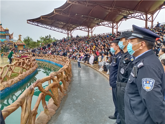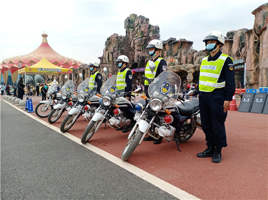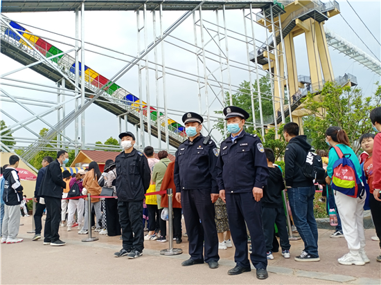 “接受游客求助、及時調(diào)解糾紛、處理園內(nèi)外各類突發(fā)事件……”在一天緊張而繁忙的工作中,民警顧不上休息,堅(jiān)守在景區(qū)一線,用自己的辛苦和汗水,換來了游客的游園安全,為游客創(chuàng)造了良好的治安環(huán)境。