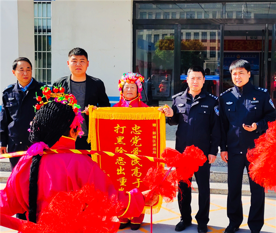 “忠黨愛民高于天,掃黑除惡出重拳。感謝你們神速破案,你們真是群眾的保護神?!?月1日,鄲城縣新城街道辦事處一電動車失主來到新城派出所,送來錦旗,感激地說。