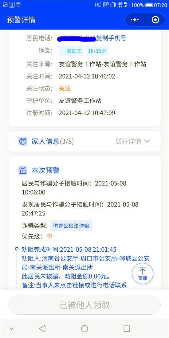 截至目前,洺南街道“金鐘罩”反詐預警系統(tǒng)注冊人數(shù)達21929人,受保護居民29547人,成功勸阻155人次免受電信網(wǎng)絡詐騙,取得了良好的社會效果。①9