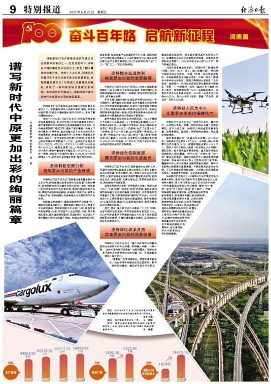 河南是我們黨開展革命活動(dòng)與建立黨組織最早的省份之一,在黨的領(lǐng)導(dǎo)下,河南這片鐫刻著紅色印記的沃土,發(fā)生了翻天覆地的滄桑巨變。黨的十八大以來(lái),河南堅(jiān)定沿著習(xí)近平總書記指引的方向奮勇前進(jìn),把高質(zhì)量發(fā)展作為1億河南人民最根本的福祉,實(shí)現(xiàn)了一系列具有標(biāo)志性意義的突破。站在新的歷史起點(diǎn)上,河南將奮力譜寫新時(shí)代中原更加出彩的絢麗篇章。
