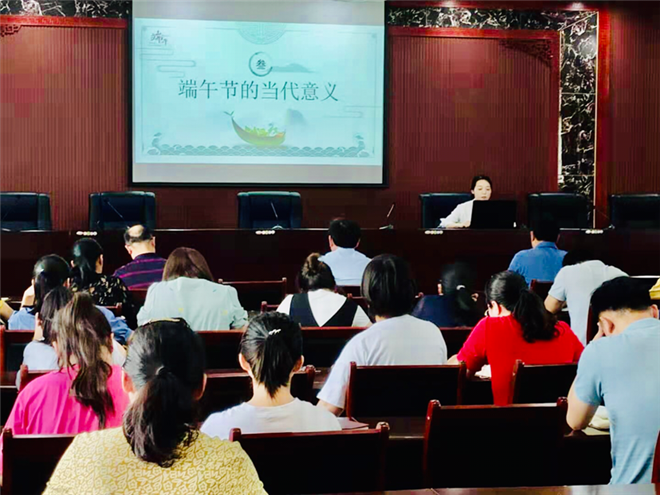 該講座由中華文化教研室講師劉慧子主講。她以圖文并茂的形式,從端午節(jié)的由來、端午節(jié)的習(xí)俗、端午節(jié)的意義等方面,全方位解讀了端午這一重要節(jié)日,讓黨員們深入了解了端午節(jié)文化內(nèi)涵:粽子包含人們的端午節(jié)愛國(guó)情懷;賽龍舟體現(xiàn)團(tuán)結(jié)一致、勇于進(jìn)取的精神;掛艾葉、香蒲,佩香囊等體現(xiàn)關(guān)愛生命、以人為本的思想等。