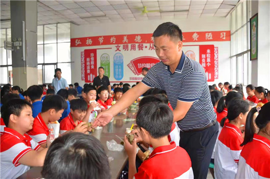 朱玉良、李繼元等詢(xún)問(wèn)后勤處粽子準(zhǔn)備的充足不充足,并走到學(xué)生中去,把散發(fā)著芳香的粽子送到大家手中,一邊叮嚀著說(shuō),不夠吃再拿,不過(guò)不要浪費(fèi)。懂禮貌的孩子們雙手從校長(zhǎng)手中接過(guò)熱乎乎的粽子,連聲說(shuō)謝謝。