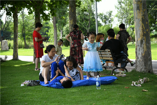 7月7日,不少市民帶著孩子在周口植物園內(nèi)休閑玩耍。進(jìn)入了炎炎夏日,周口植物園里清新的空氣、大片綠蔭、盛開(kāi)的鮮花十分吸睛,市民在林中穿行休閑漫步、孩子們快樂(lè)地蕩秋千……這里成了市民游玩消暑的好去處。③2
