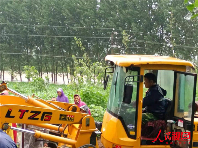 雨越下越大,衛(wèi)河水位持續(xù)上漲,永康段因前期澆地破開的口由于水流量過(guò)大,出現(xiàn)缺口,群眾的生命財(cái)產(chǎn)安全受到了威脅,河上巡邏的村干部發(fā)現(xiàn)衛(wèi)河一處排污口不斷往外涌水,立即報(bào)告給張乾書記,此時(shí),張乾家中剛做好午飯,張書記把碗往桌上一放,還沒(méi)來(lái)得及吃一口,穿著雨衣就沖出門外,趕到現(xiàn)場(chǎng),看到情況十分緊急,千鈞一發(fā)之際,他不顧危險(xiǎn),大喊一聲“我來(lái)!大家把沙袋遞給我!”縱身跳入湍流的河中,只見(jiàn)他佝僂起身體,降低重心,以防被急流沖倒,一邊等著岸上接力過(guò)來(lái)的沙袋,在他抬頭等著接沙袋的時(shí)候,雨水打得他的眼睛都睜不開,他瞇著眼睛將一袋袋沙袋壘到衛(wèi)河封堵口,成功封堵缺口。經(jīng)過(guò)一夜的努力,和此時(shí),已經(jīng)夜里四點(diǎn)鐘,張書記全身濕透,雙腿被冷水泡得瑟瑟發(fā)抖,剛被人拉上岸,又有人來(lái)說(shuō)共產(chǎn)主義渠永康段又出現(xiàn)決堤。張乾書記二話沒(méi)說(shuō),又號(hào)召村上幾十人,立即趕到現(xiàn)場(chǎng),指導(dǎo)防汛人員進(jìn)行搶險(xiǎn)?!跋韧跍希s緊把水排掉,如果大堤經(jīng)過(guò)長(zhǎng)時(shí)間的浸泡,極容易形成塌方?!弊屑?xì)觀察險(xiǎn)情后,張乾趕緊吩咐道。為了填大堤,他親自開著鏟車填放沙袋,但是由于大堤被水沖垮,已經(jīng)承受不住鏟車的重量,此時(shí),他反應(yīng)迅速,趕緊倒車返回岸上,幸好沒(méi)有掉入河中,隨即又發(fā)動(dòng)村內(nèi)群眾開來(lái)自家的兩輪、三輪車?yán)^續(xù)王河堤上面運(yùn)送沙袋,但是由于水流量太大,杯水車薪,又聯(lián)系鎮(zhèn)上的領(lǐng)導(dǎo),協(xié)調(diào)了周邊村莊的黨員群眾一起,經(jīng)過(guò)連夜奮戰(zhàn),終于將決堤處堵住。