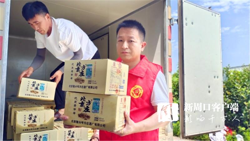 7月30日11時30分,在西華縣新的社會階層人士聯誼會牽頭下,北京方莊酒周口總代理負責人彭建立和員工一起載著價值6多萬元的酒精、蚊香等物品相繼來到西華縣黃橋鄉(xiāng)、遲營鄉(xiāng)、田口鄉(xiāng)等多個地方,親自將群眾最亟需的消毒、驅蟲用品送到他們手中。
