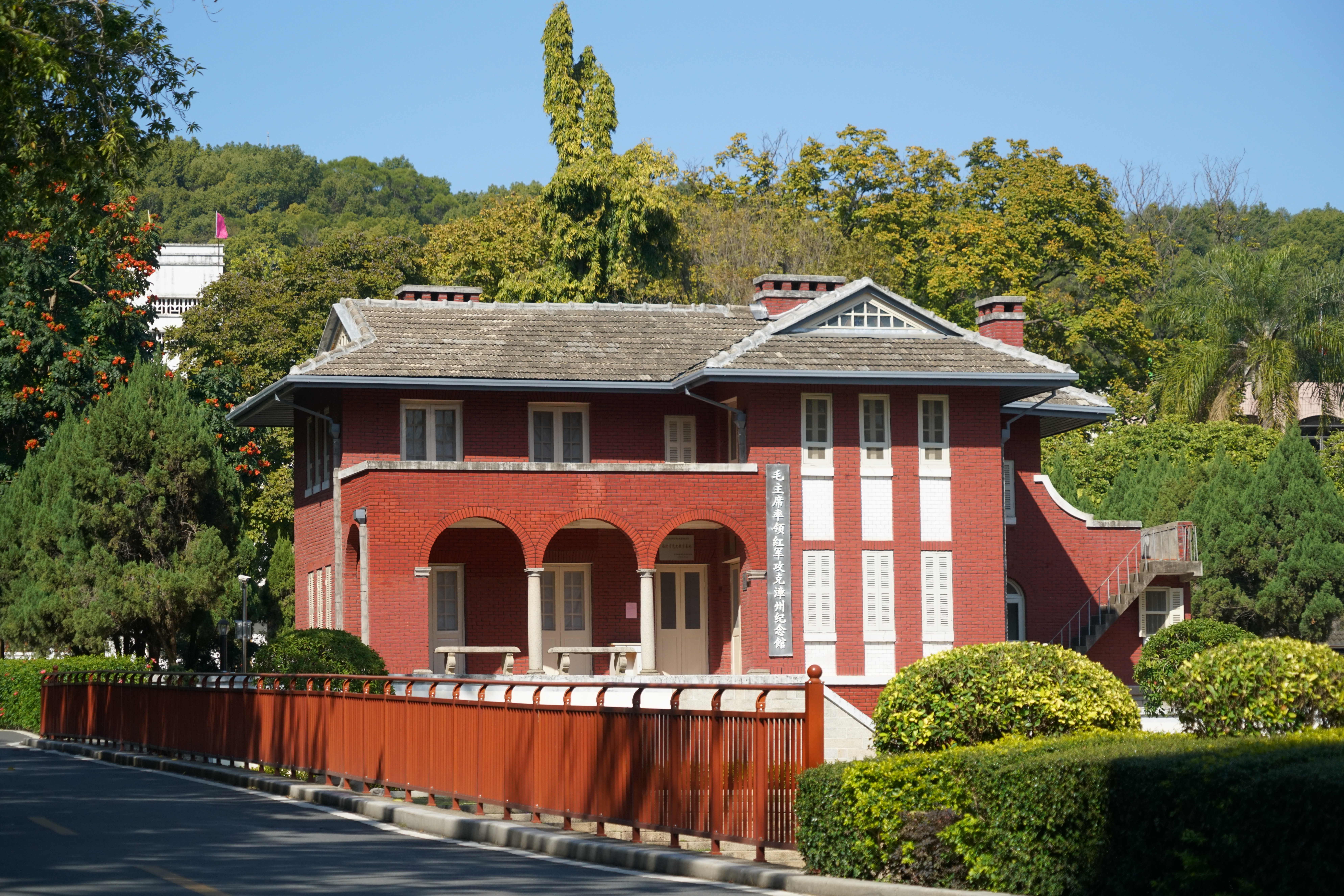 漳州市是福建省重要的革命蘇區(qū)老區(qū),歷史上多次發(fā)生對中國革命進程有重大影響的事件,紅色遺址眾多。薌城區(qū)芝山大院內(nèi)有座三層小洋樓是“毛主席率領(lǐng)紅軍攻克漳州紀念館”,人們親切地稱它為“芝山紅樓”。東征漳州勝利后,毛澤東同志便居住于此,指揮紅軍進漳期間各項工作。89年來,綠蔭掩映的芝山紅樓守護著漳州人的榮耀。