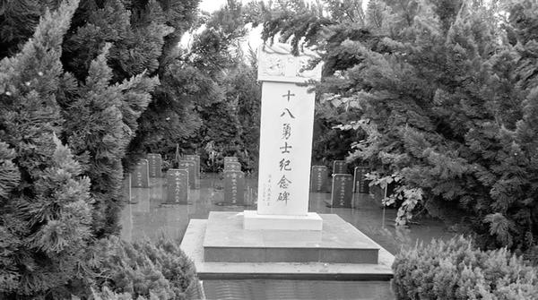 十八勇士,年輕的生命雖然短暫卻因抗戰(zhàn)而燦爛,如花的青春盡管凋零卻因捐國而永恒。那些鐫刻在石碑上的一個個名字像鮮活生命,無聲地訴說著對侵略者的仇恨。烈士的墓碑六人一排整齊排列,以出征的姿態(tài)表達(dá)了出師未捷身先死的遺恨。