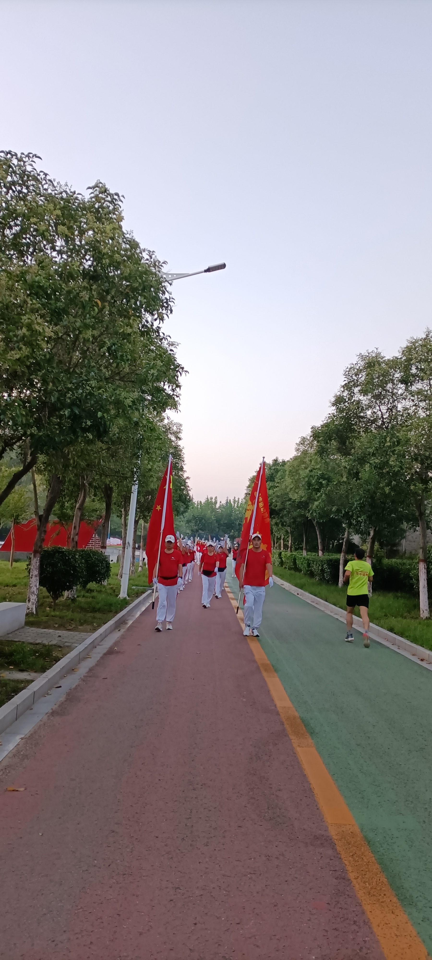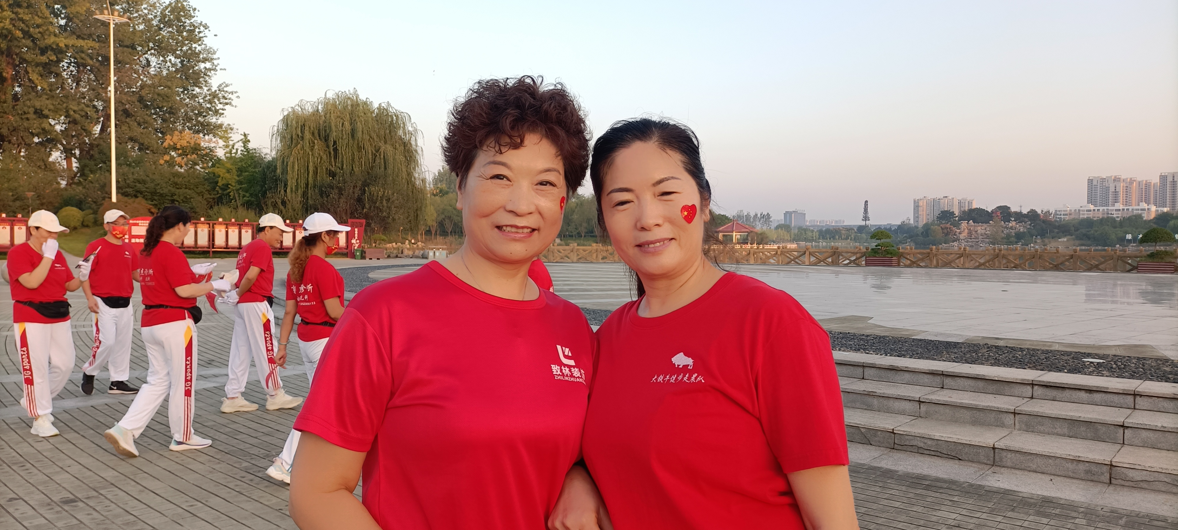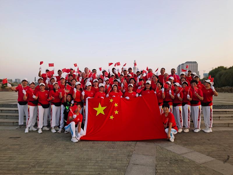 10月1日清晨,周口健步走大鐵牛晨隊(duì)的100余名隊(duì)員手持國(guó)旗,邁著矯健的步伐,迎著初升的朝陽(yáng),行走在周口公園,以健康的身姿慶祝祖國(guó)生日。周口日?qǐng)?bào)·周道客戶端記者 高洪馳攝