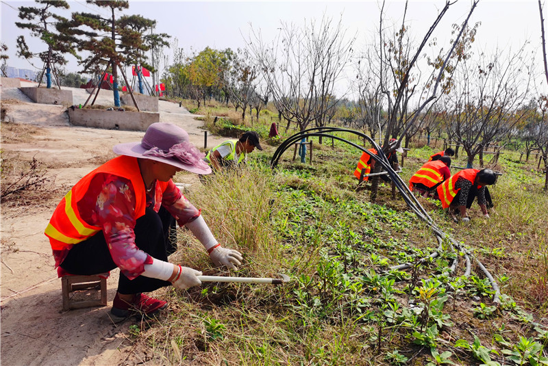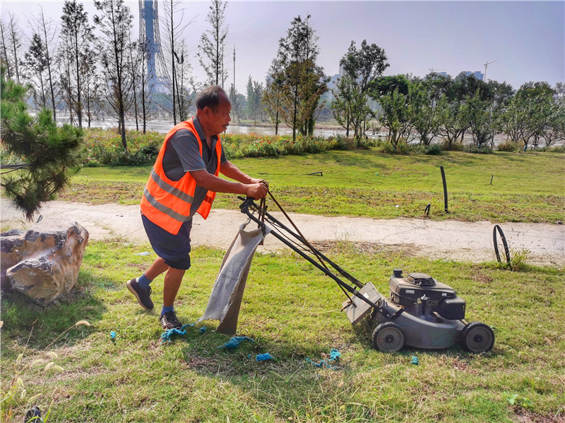 國慶節(jié)期間,在廣大人民群眾享受假期的時候,周口市城區(qū)沙潁河公園內(nèi),一群身著紅馬甲的園林綠化工人,不畏炎炎烈日,在公園綠化帶忙碌著修整綠植、草坪,用辛勤的汗水維護城市的美麗。②9