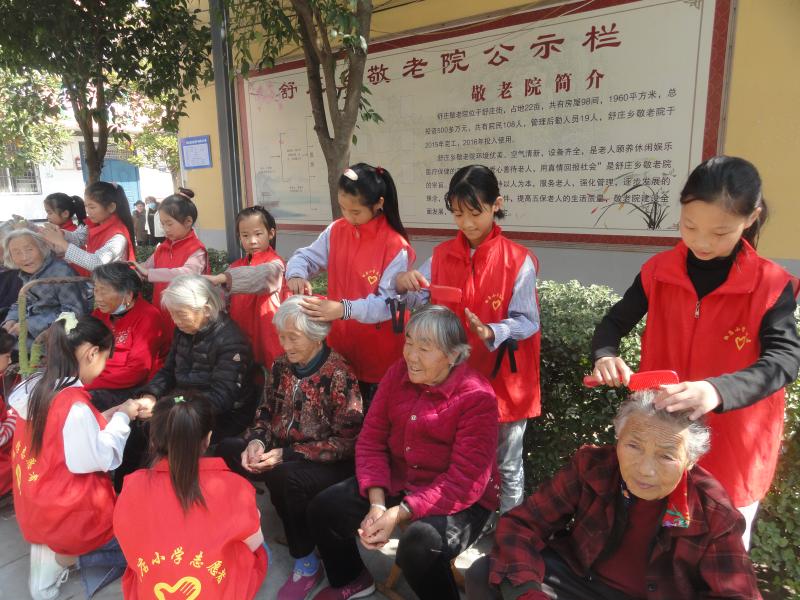 10月13日,商水縣舒莊鄉(xiāng)杜店小學(xué)的愛心志愿者來到舒莊鄉(xiāng)敬老院為老人們梳頭。為對學(xué)生進(jìn)行愛老敬老教育,重陽節(jié)前夕,杜店小學(xué)組織20名愛心志愿者到鄉(xiāng)敬老院為老人們打掃衛(wèi)生、梳頭、疊被。②13記者 付永奇 通訊員 喬連軍攝