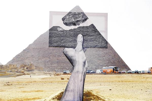 這是10月21日在埃及吉薩金字塔景區(qū)舉辦的藝術(shù)展上拍攝的一件藝術(shù)作品。首屆金字塔國(guó)際藝術(shù)展10月21日在埃及吉薩金字塔景區(qū)開(kāi)幕,來(lái)自埃及、美國(guó)、俄羅斯等國(guó)的十余位藝術(shù)家在景區(qū)內(nèi)露天展出了大型雕塑等藝術(shù)作品。新華社發(fā)