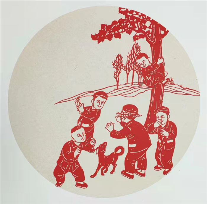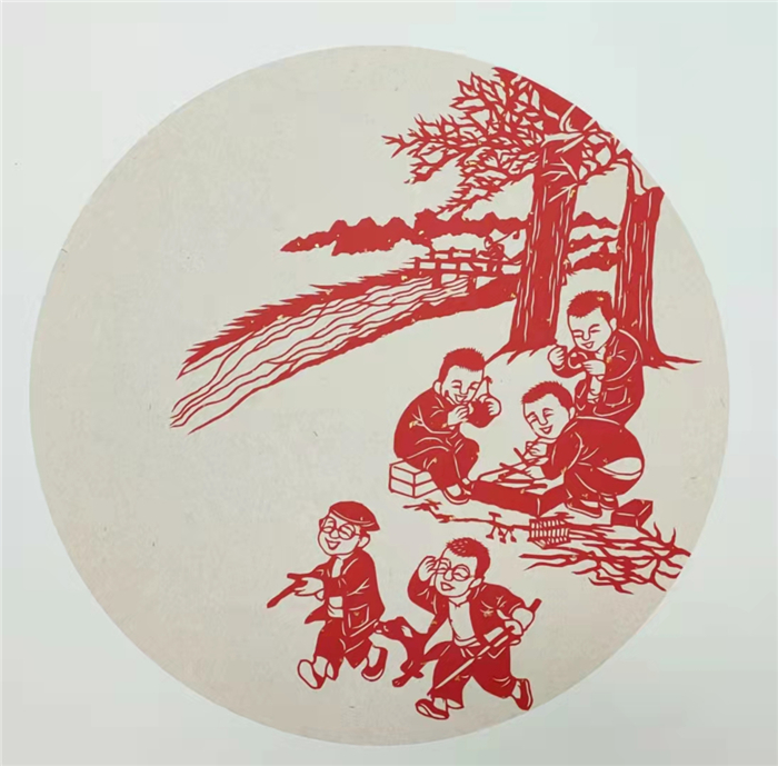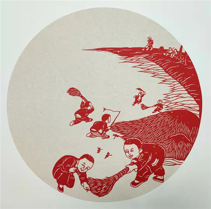 透過紅紙,有的孩童正神采飛揚(yáng)地玩捉迷藏,有的正有模有樣地幫著長輩干農(nóng)活,還有的在乖巧地看長輩下象棋……為助力全國文明城市創(chuàng)建,表達(dá)對(duì)健康生活的熱愛,近日,周口剪紙非遺傳承人劉秀華創(chuàng)作出了一組“童趣”剪紙作品。