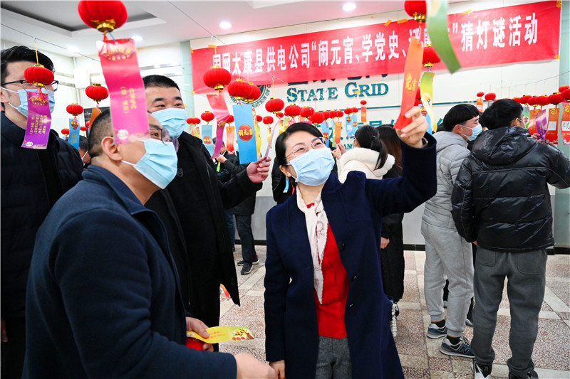 2月15日,為慶祝元宵佳節(jié),太康縣供電公司舉行“鬧元宵、學(xué)黨史、話廉潔”猜燈謎活動(dòng)。燈謎不僅涵蓋黨紀(jì)法規(guī)、黨史知識(shí),還將廉潔文化融入其中,既有趣味性,又有知識(shí)性,活躍了節(jié)日氣氛。