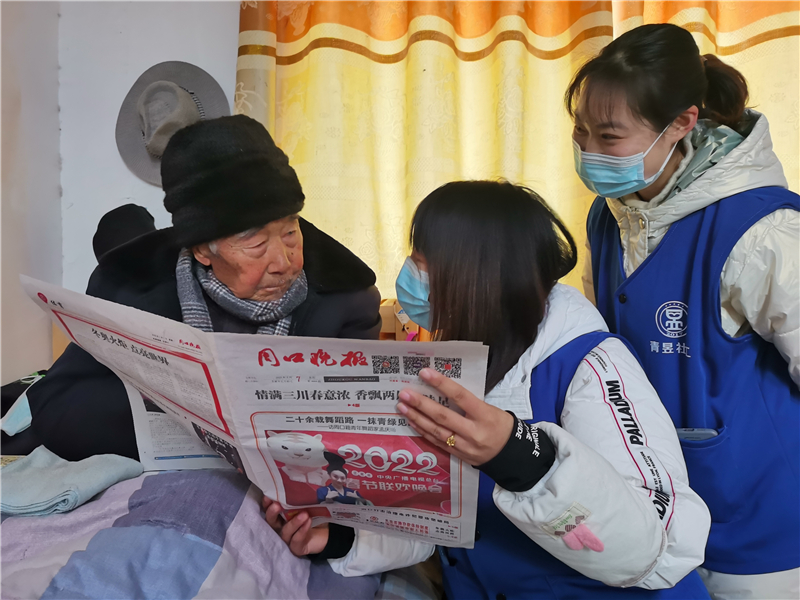 今年80歲的李東明,喜歡讀書看報,但是由于年齡原因視力逐漸下降,讀書看報越來越不方便。自從敬老院內(nèi)設(shè)立了社工站,他每天最高興的事就是社工為他讀報紙上的內(nèi)容?!靶姨澾@些孩子的陪伴,讓我的老年生活越來越幸福!”李東明說。