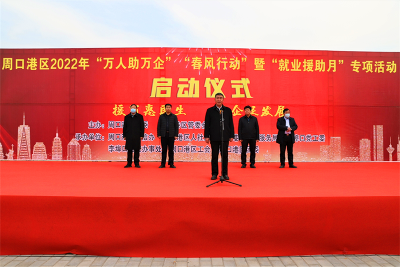 2月22日,周口港區(qū)舉辦2022年“萬(wàn)人助萬(wàn)企”“春風(fēng)行動(dòng)”暨“就業(yè)援助月”啟動(dòng)儀式,通過(guò)舉辦一系列活動(dòng),為企業(yè)和求職者牽線搭橋。港區(qū)黨委書(shū)記孫鵬宣布啟動(dòng)儀式開(kāi)幕,管委會(huì)主任胡軍華在儀式上致辭,港區(qū)領(lǐng)導(dǎo)杜廣賢、劉學(xué)慶、李素芹參加活動(dòng)。