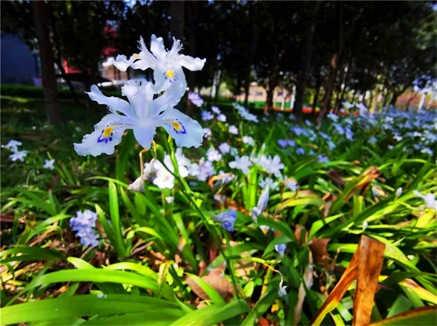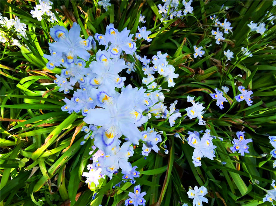 近日,濱河公園的蝴蝶花開了,微風(fēng)輕撫,如千百只彩蝶在綠葉叢中蹁躚起舞,典雅清麗,清香四溢。②10
