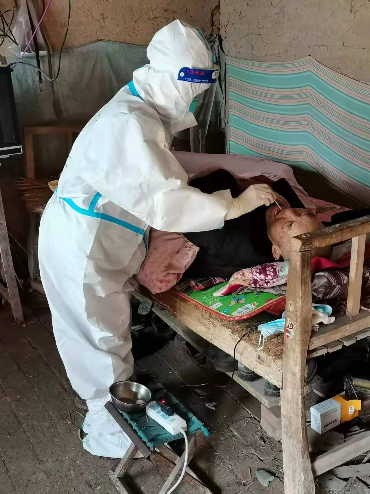 很快,在雷雪玲的帶領(lǐng)下,商水縣婦幼保健院一支33人的醫(yī)療支援隊(duì)成立了。4月1日凌晨5點(diǎn),她率領(lǐng)這支33人的核酸采集隊(duì)伍奔赴太康縣朱口鎮(zhèn),立即投入到核酸采集工作中,在入戶(hù)采樣的第3天,雷雪玲腳脖子都腫到了有落地都痛的感覺(jué),但她沒(méi)有抱怨,在心里默念著:“快一點(diǎn)、再快一點(diǎn)……”她拼盡全力,與時(shí)間賽跑,不分晝夜,堅(jiān)持每天入村采樣,對(duì)待行動(dòng)不便人年老有病人員,她都是親自入戶(hù)到床前為她們采樣。十幾天來(lái)共組織參加采樣11次,采集樣本10余萬(wàn)人,無(wú)一例差錯(cuò)發(fā)生。大朱莊的一位小朋友,眼含淚水,深情地向雷醫(yī)生送來(lái)了自己畫(huà)的一幅為她加油的畫(huà),并向雷醫(yī)生說(shuō): “阿姨,你們辛苦了,因?yàn)橛心銈儯覀儾判腋?!?/p>