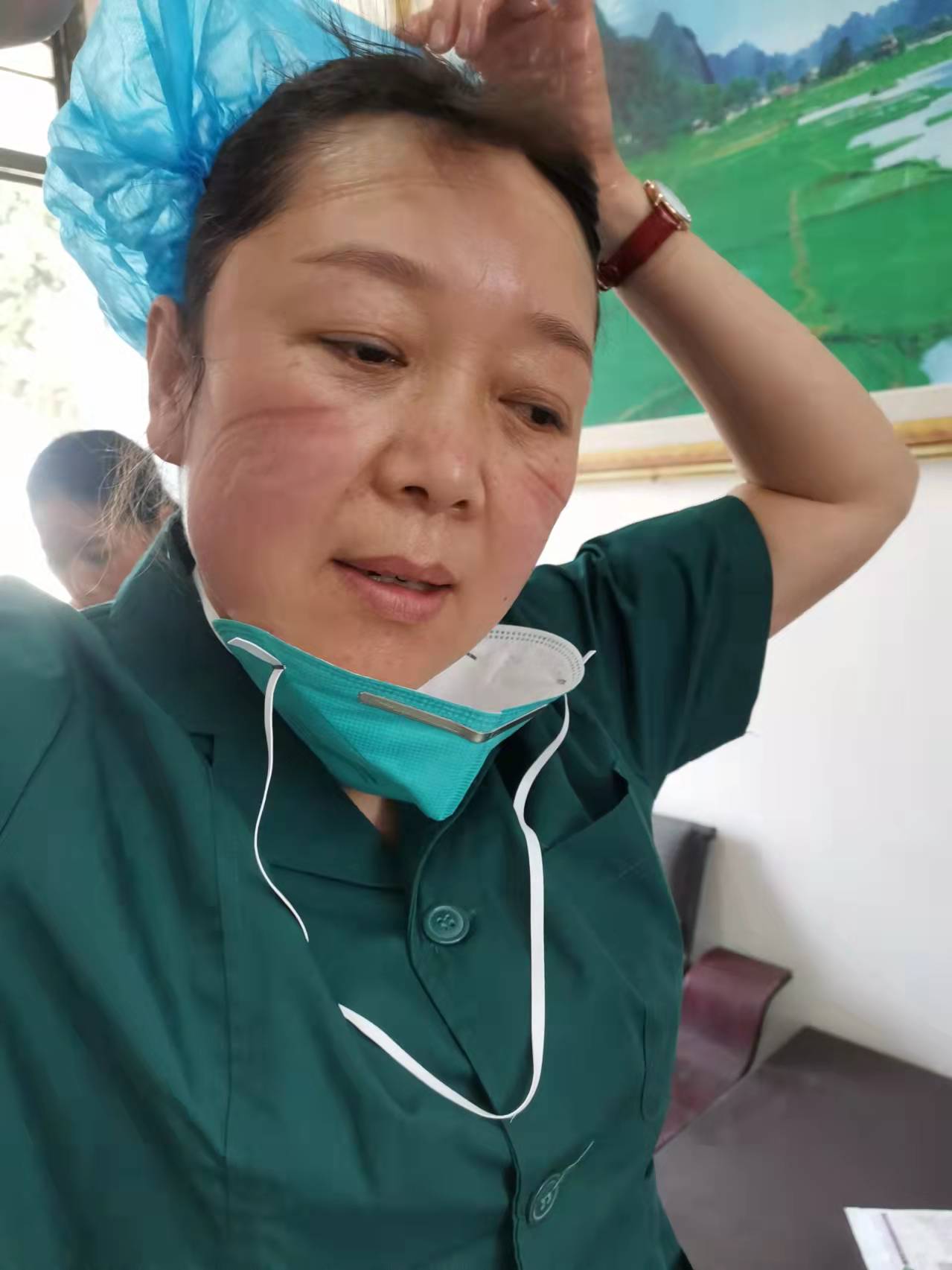 10多天來(lái),雷雪玲總是早出晚歸,穿著厚厚的隔離服,戴著橡膠手套、防護(hù)眼鏡、帽子和面罩,套著過(guò)膝的腳套,連續(xù)工作數(shù)十個(gè)小時(shí),期間不能上衛(wèi)生間、不能喝水,甚至不能擦擦汗。天氣寒冷,但是一天工作下來(lái),她總是被厚厚的防護(hù)服悶得汗流浹背,手被泡得發(fā)白,臉上也被口罩勒出層層痕跡,加上本來(lái)就患有心臟病的她,經(jīng)常會(huì)體力不支,但是她卻不顧病痛的折磨,從未請(qǐng)過(guò)一次假,每天都堅(jiān)持帶病入戶(hù)采樣。晚上工作結(jié)束,她的雙腿已經(jīng)麻木,也顧不上休息片刻又匆忙準(zhǔn)備第二天檢測(cè)需要的試劑,有時(shí)為了方便早上出發(fā),她直接和衣而臥。她的這種不怕苦,不怕累,舍小家為大家的犧牲精神深深感動(dòng)著每一位醫(yī)護(hù)人員!
