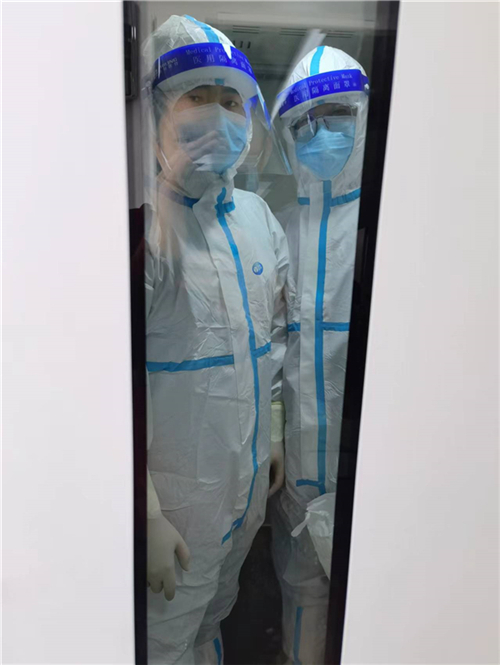 如果說有一座城叫眾志成城,那必定有一種力量叫檢驗擔(dān)當(dāng)。在幾十平方米的實驗室內(nèi),環(huán)境消毒、物資準(zhǔn)備、接收標(biāo)本、編號錄入、核酸提取、環(huán)境消殺、基因擴增、結(jié)果研判、高壓消毒、信息上報、表格填寫、室內(nèi)質(zhì)控、室間質(zhì)評……每一個環(huán)節(jié)都需要嚴(yán)格規(guī)范操作,不放過任何一個細(xì)節(jié)、不能有一絲毫紕漏。在核酸檢測過程中,王健嚴(yán)格遵守生物安全制度,標(biāo)準(zhǔn)穿戴三級防護裝備,帽子、N95口罩、防護服、護目鏡、乳膠手套、隔離衣……一個也不能少。為以最快速度出具檢測結(jié)果,確保實驗室安全,王健在低于標(biāo)準(zhǔn)大氣壓的負(fù)壓狀態(tài)下進行工作。三級防護和大量檢測工作時常會使他出現(xiàn)汗流浹背、呼吸不暢、頭痛等缺氧癥狀,對體力是一個極大挑戰(zhàn)。但他總能克服這些困難,不辜負(fù)黨和人民的期望,在抗擊新冠肺炎疫情的戰(zhàn)場上勇?lián)姑?、沖鋒在前,為人民群眾筑起生命健康的第一道防線!