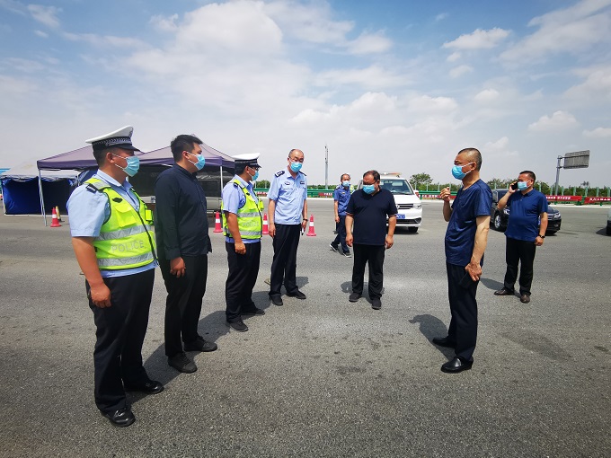 岳備戰(zhàn)一行先后到譚莊高速路口執(zhí)勤卡點、商南高速路口執(zhí)勤點看望慰問值班民輔警及防疫工作人員,并送上慰問品。在卡點,岳備戰(zhàn)詳細檢查了各項防疫工作落實情況,為在一線的防疫人員送去節(jié)日祝福及慰問品,感謝他們用實際行動詮釋擔(dān)當(dāng)精神、奉獻精神,對大家頂著烈日堅守在防疫一線,為廣大百姓的生命安全保駕護航。同時他強調(diào)大家要時刻保持臨戰(zhàn)狀態(tài),以高度的責(zé)任感,堅定的信心和有力的舉措,站好崗、履好職,扎實做好疫情防控各項工作,全力守護百姓生命健康安全。