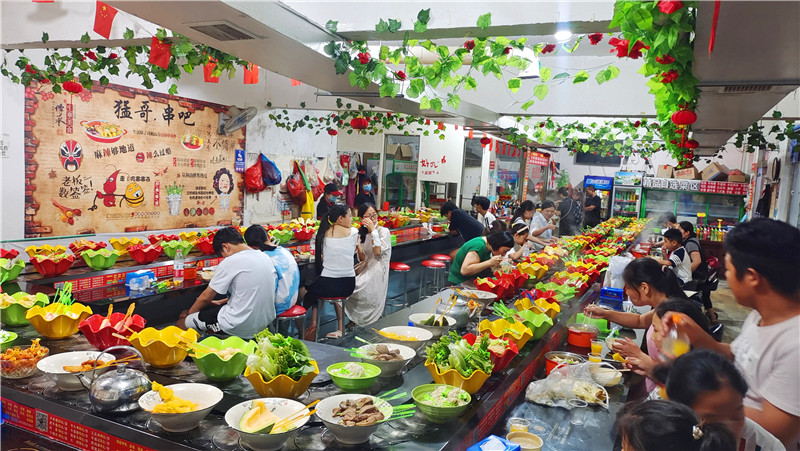 7月22日,周五。傍晚時分,一場暴雨如約而至,給燥熱的天氣帶來絲絲涼意。位于西華原縣委黨校院內(nèi)的串吧老板李猛從后廚走出,搬把凳子坐在店門口一邊涼快,一邊刷新著手機(jī)天氣預(yù)報。他得根據(jù)天氣情況估摸一下當(dāng)晚的客流量,以備食材。