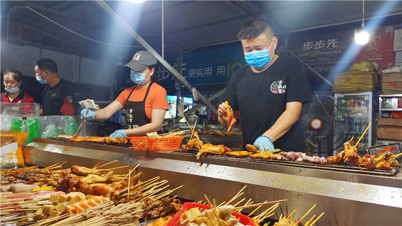 采訪中,記者還了解到,在原縣委黨校地攤夜市發(fā)展壯大的過程中,西華縣商務(wù)局、城管局、市場監(jiān)管局等部門牽頭引導(dǎo)商戶在西華縣高鐵站、上億美食廣場和西華縣南廣場設(shè)置地攤夜市,進(jìn)行規(guī)范管理,繁榮西華“夜經(jīng)濟(jì)”,共設(shè)置190余家攤位,日均消費35萬元左右。①5