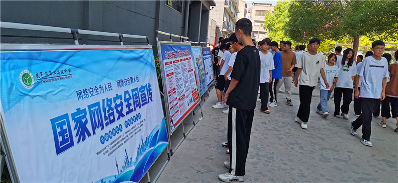 9月6日是國家網(wǎng)絡(luò)宣傳周校園日,鹿邑縣第二高級中學(xué)校園里整齊地?cái)[放出數(shù)塊制作精美、內(nèi)容充實(shí)的網(wǎng)絡(luò)安全宣傳展板,引起師生們駐足觀看。