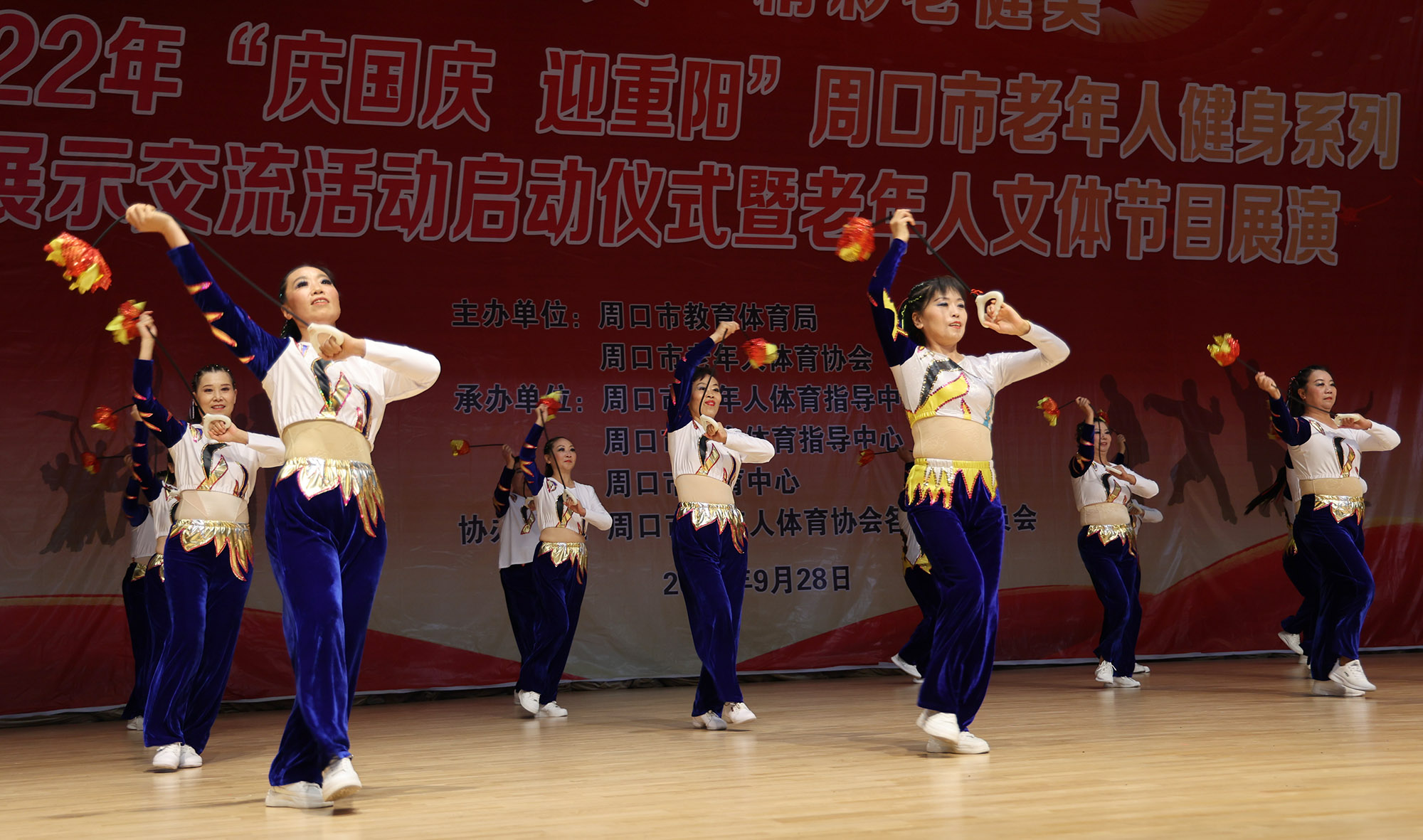 9月28日上午,幾百名老年人表演精彩的才藝展示自己的幸福生活,這是由周口市教育體育局、周口市老年人體育協(xié)會主辦的“喜迎二十大,精彩老健美”慶祝國慶節(jié)、迎接重陽節(jié)周口老年人健身展演和交流活動,展示我市老年人的精彩生活和健康追求。記者 梁照曾 攝 ③19