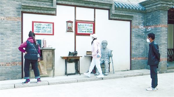 5月16日上午,記者在荷花街看到,其沿街仿古式游廊又增添了“鬧市輪蹄”雕塑,向人們再現(xiàn)了隱身到歷史深處的古街風情。