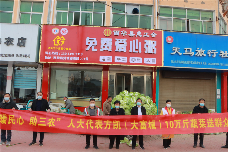 冬日暖陽(yáng),愛意融融。12月7日,河南省西華縣人民醫(yī)院、中醫(yī)院、敬老院的院子里,掌聲陣陣,笑語(yǔ)歡聲,洋溢著溫馨、祥和的氣氛?!爸袊?guó)好人”、周口市人大代表方凱幫助黃橋鄉(xiāng)菜農(nóng)解決蔬菜滯銷難題,并通過(guò)西華縣紅十字會(huì)向這些單位捐贈(zèng)10萬(wàn)斤蔬菜,讓滯銷菜變“暖心菜”。方凱的這一舉動(dòng),受到群眾的稱贊。