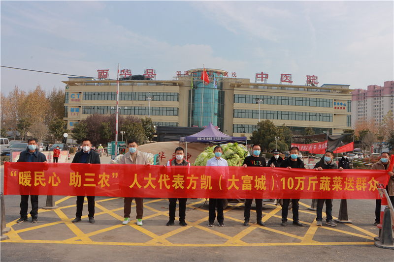 近日,方凱了解到西華縣黃橋鄉(xiāng)菜農(nóng)蔬菜滯銷的問(wèn)題,便立即到現(xiàn)場(chǎng)察看,當(dāng)即決定幫助菜農(nóng)解決蔬菜滯銷難題,購(gòu)買10萬(wàn)斤蔬菜,并將這些蔬菜捐贈(zèng)給縣人民醫(yī)院、中醫(yī)院、敬老院等單位。