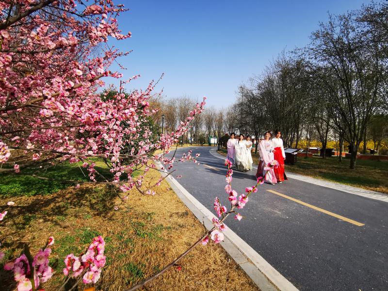 一襲古裝徜徉花間,風擺裙裾楚楚動人。3月8日,在淮陽梅園,不時有唐裝漢服裝扮的女子在這里游園賞春。據(jù)了解,春暖花開,溫度適宜,有不少古裝愛好者選擇在這個季節(jié)著古裝游園,成為春景中的一景,非常吸睛。