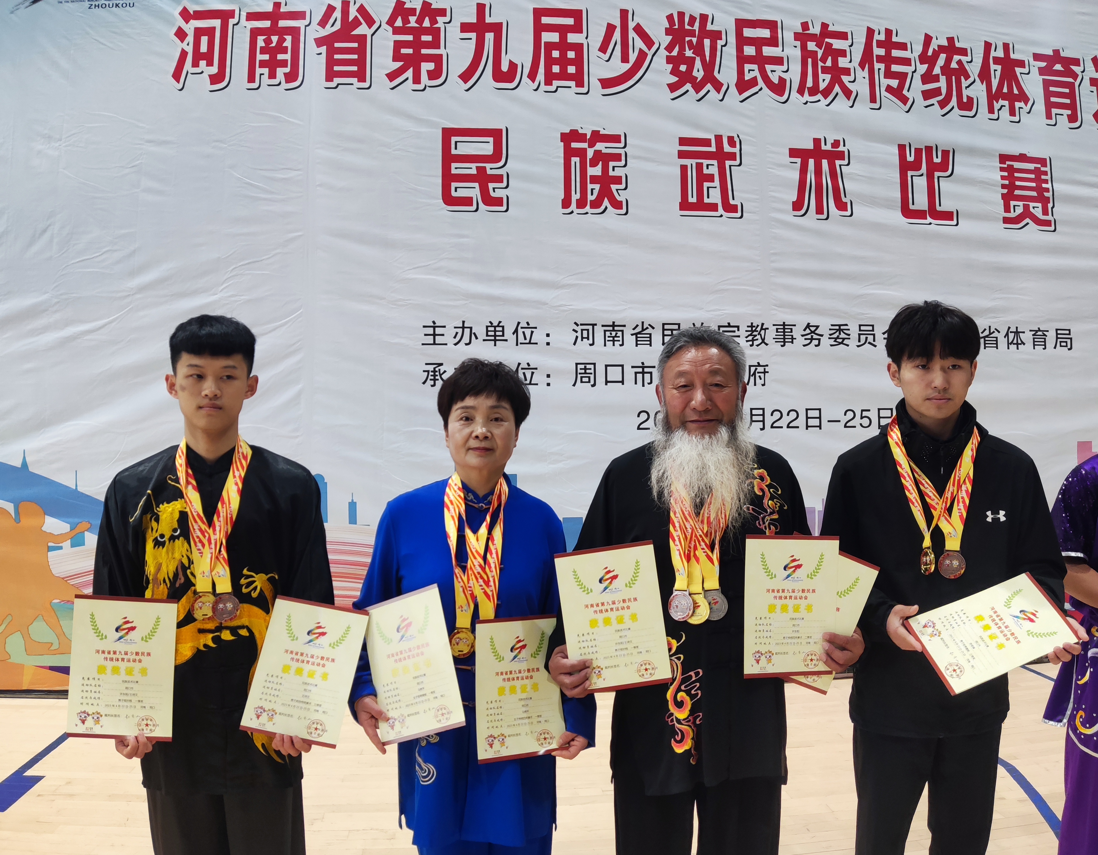 據(jù)悉,在本屆民族運動會民族武術(shù)項目中,產(chǎn)生13項金牌,24項銀牌,29項銅牌。周口隊收獲4項金牌、1項銀牌、3項銅牌,取得歷史最好成績。其中,蘇俊瑞獲得男子傳統(tǒng)一類拳術(shù)金牌,馬艷平獲得女子傳統(tǒng)四類拳術(shù)金牌、女子組單器械金牌,許東陽、王詩文獲得男子組對練金牌。許東陽還獲得男子傳統(tǒng)四類拳術(shù)銀牌、男子組單器械銅牌。王詩文獲得男子其他類拳術(shù)銅牌。蘇俊瑞獲男子組單器械銅牌。②2
