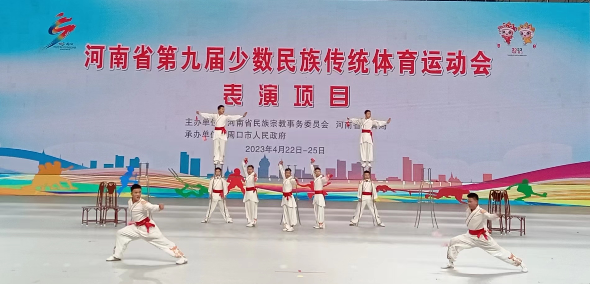 友誼第一,比賽第二。4月24日下午,河南省第九屆少數(shù)民族傳統(tǒng)體育運(yùn)動會表演項(xiàng)目比賽在周口市體育館完美收官。本屆運(yùn)動會共有14個表演項(xiàng)目獲一等獎。