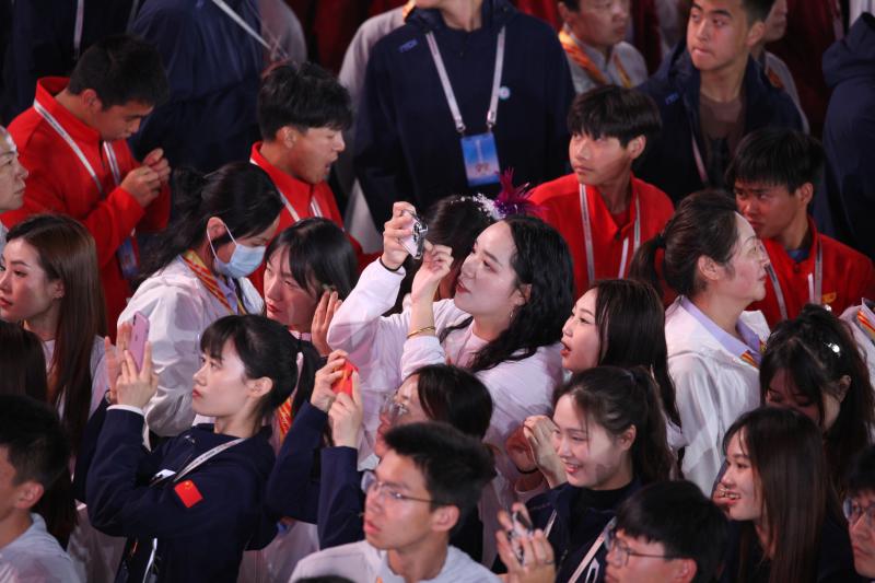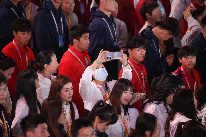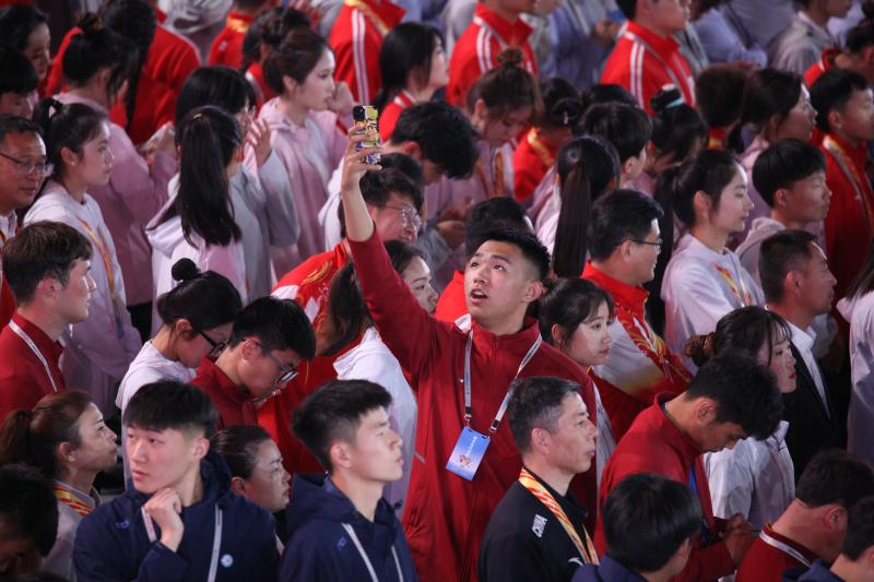 閉幕式上,來自全省各地的運(yùn)動員用手機(jī)記錄下精彩瞬間。記者 劉俊濤 攝