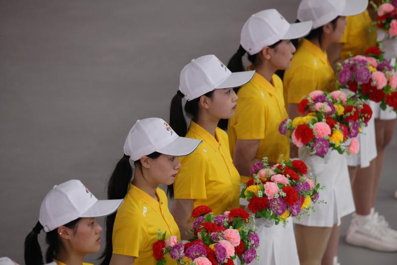 閉幕式上志愿者手持鮮花歡迎各地來賓。記者 劉俊濤 攝