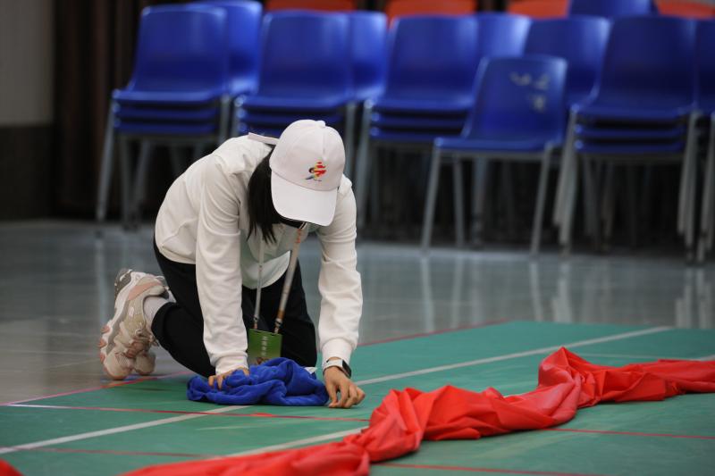 志愿者在用心清理押加比賽場地中的細(xì)小雜物。記者 劉俊濤 攝