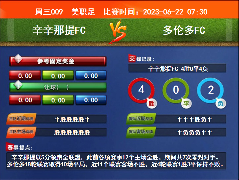 比賽時間:2023-06-22 07:30賽事提點:辛辛那提以5分領(lǐng)跑全聯(lián)盟,此前各項賽事12個主場全勝,期間共7次零封對手。多倫多18輪聯(lián)賽取得10場平局,近11個聯(lián)賽客場不勝,近4輪聯(lián)賽1勝3平保持不敗。