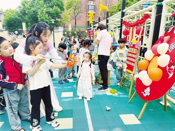 中秋節(jié)前夕,市城鄉(xiāng)一體化示范區(qū)各幼兒園積極組織開展形式多樣、內容豐富的慶?;顒?,讓學生沉浸式感受中華優(yōu)秀傳統(tǒng)文化的獨特魅力。圖一為老師帶領小朋友體驗“后羿射日”游戲。