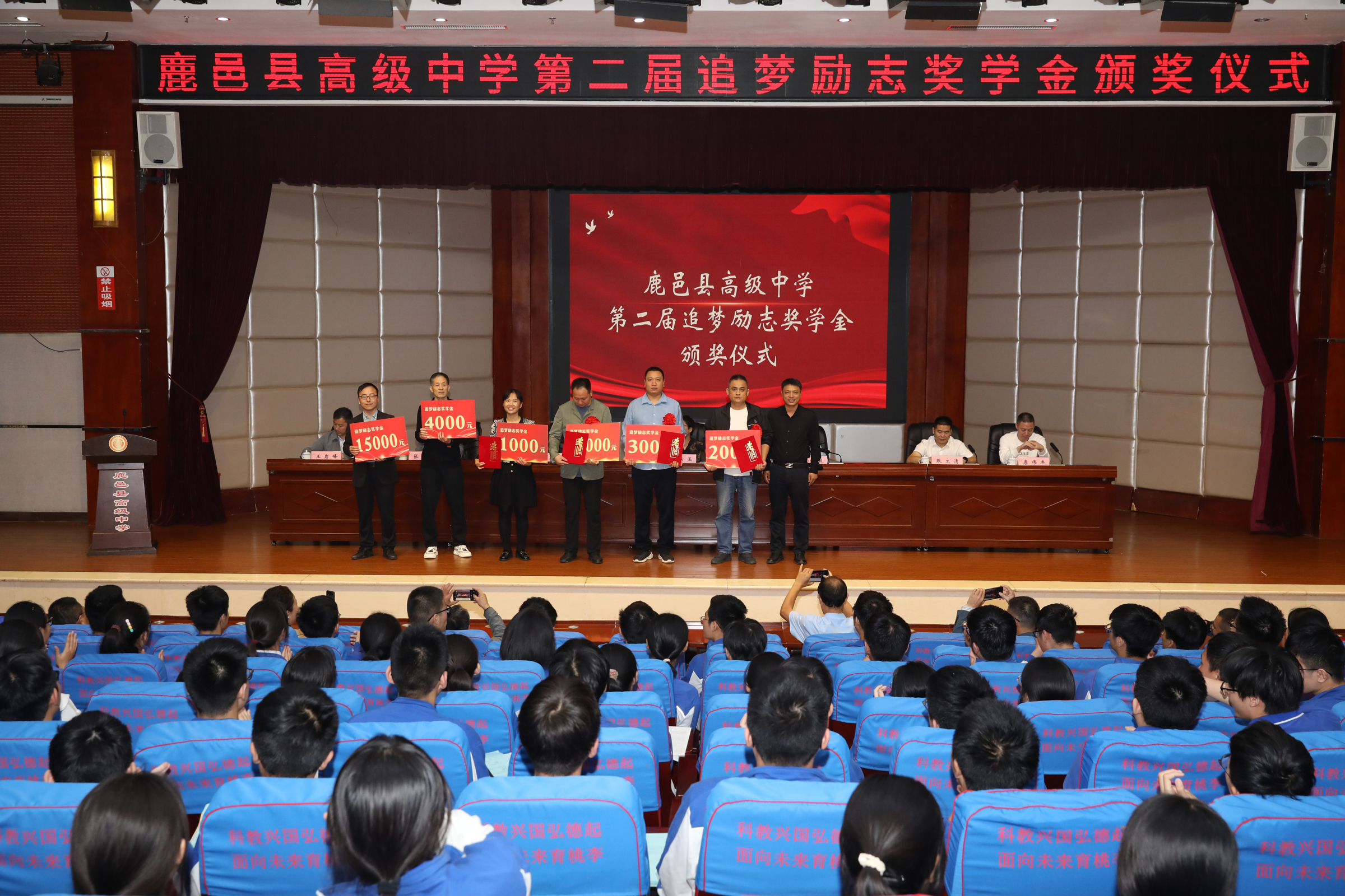 據(jù)了解,鹿邑縣高級中學(xué)追夢勵志獎學(xué)金是2022年由優(yōu)秀校友、暨南大學(xué)教授王高賀發(fā)起,部分校友和社會愛心人士自愿捐贈資金,在學(xué)校設(shè)立的勵志獎學(xué)金,用于獎勵母校優(yōu)秀的學(xué)生和教師團(tuán)隊。此次頒獎儀式共頒發(fā)獎學(xué)金11萬元,周樂樂、張逍遙等40位同學(xué)和高小飛、毛東方等6個班級教師團(tuán)隊獲得追夢勵志獎學(xué)金。在2023年高考中,陳孟康同學(xué)被北京大學(xué)飛行員班錄取,北清部全體教師獲得3萬元名校獎。